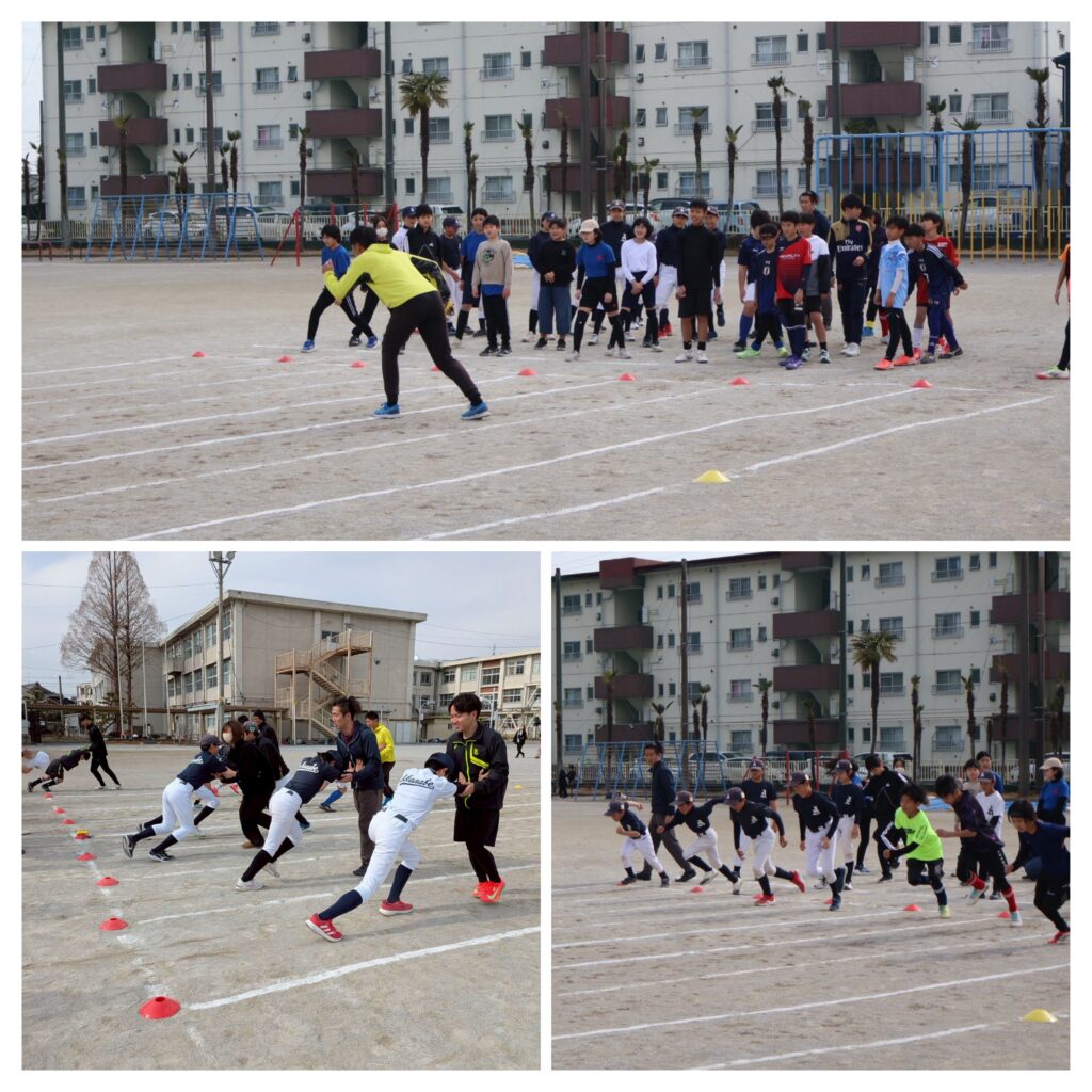 2月14日(土)茜部小学校グラウンドにて、茜部スポーツ少年団50周年記念イベントとして、みらいずさんに来て頂き、走り方教室を開催しました。