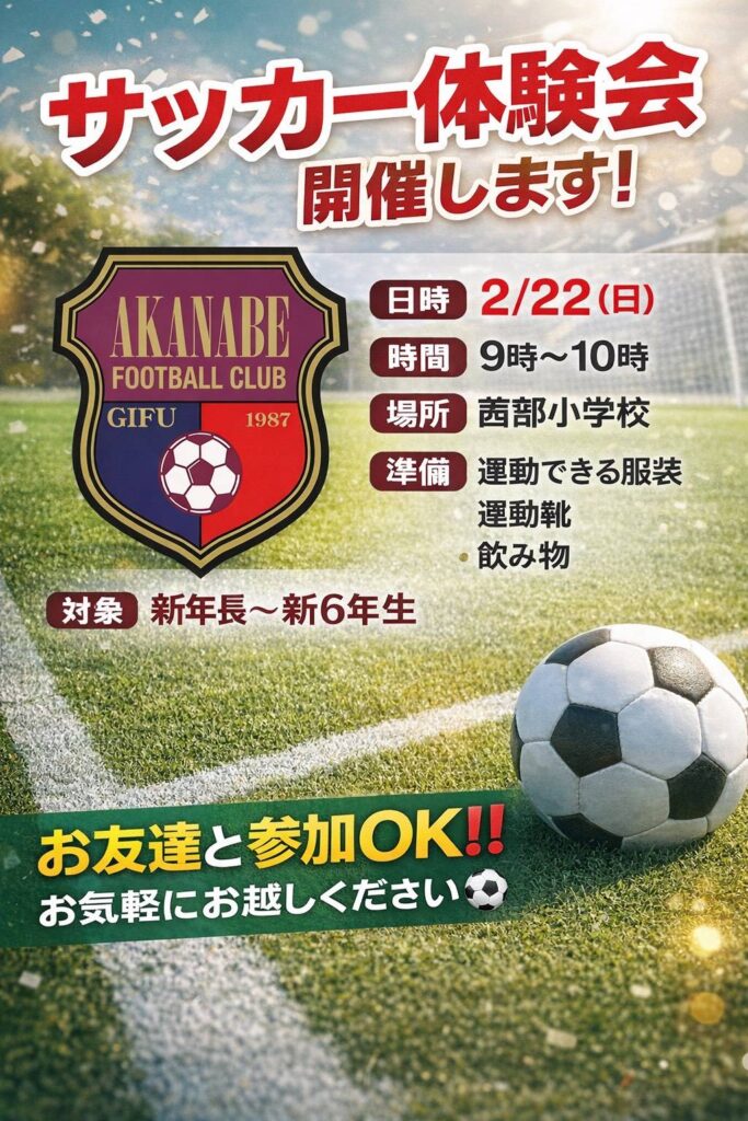 この体験が茜部スポーツ少年団で活動を始めるきっかけになってくれればと思います。